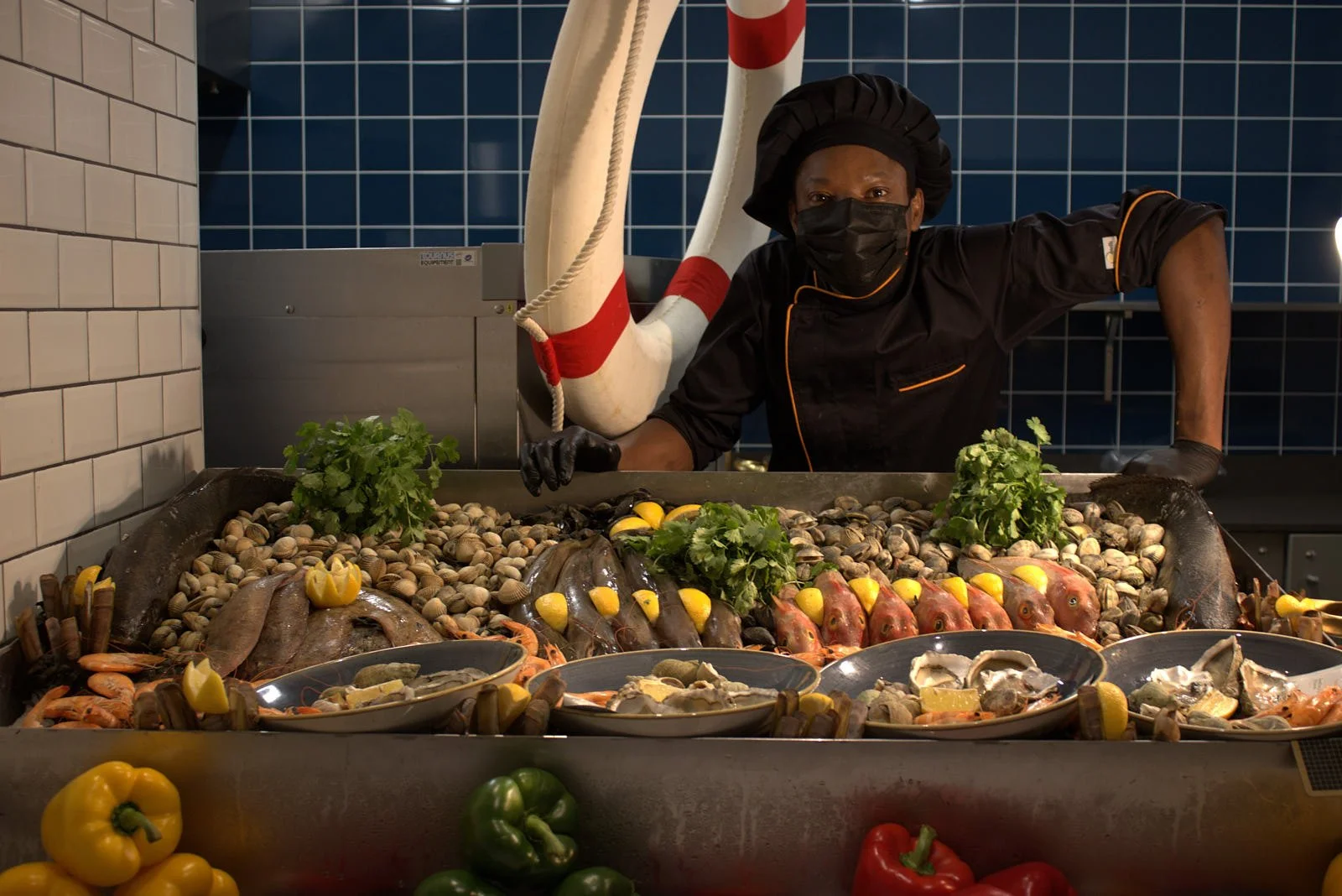 The Place du Marche is the new market hall where self service diners headed for Le Square pass through to view the day’s menu and select from a number of open kitchen serveries. As well as appetizing dishes prepared by chefs in front of your eyes, there are groceries and fresh produce including fish for sale.